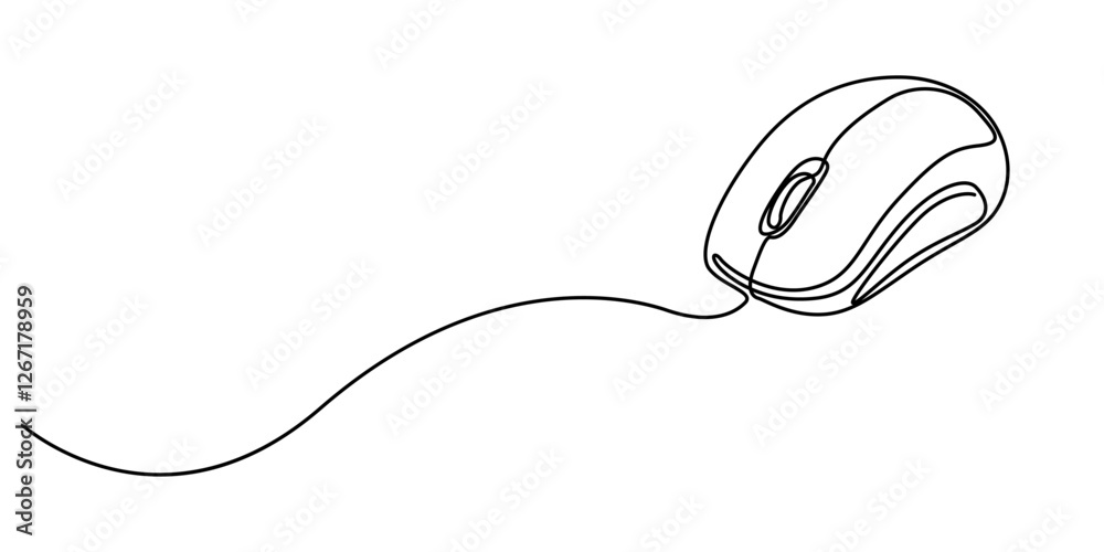 Wall mural computer mouse continuous one line drawing, drawn continuous one line computer mouse logo. vector il