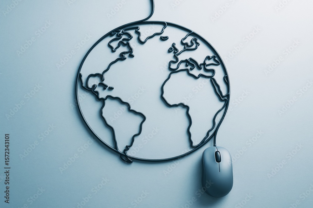 Wall mural : Computer mouse cord forming world map symbolizing global internet connection and digital communicati
