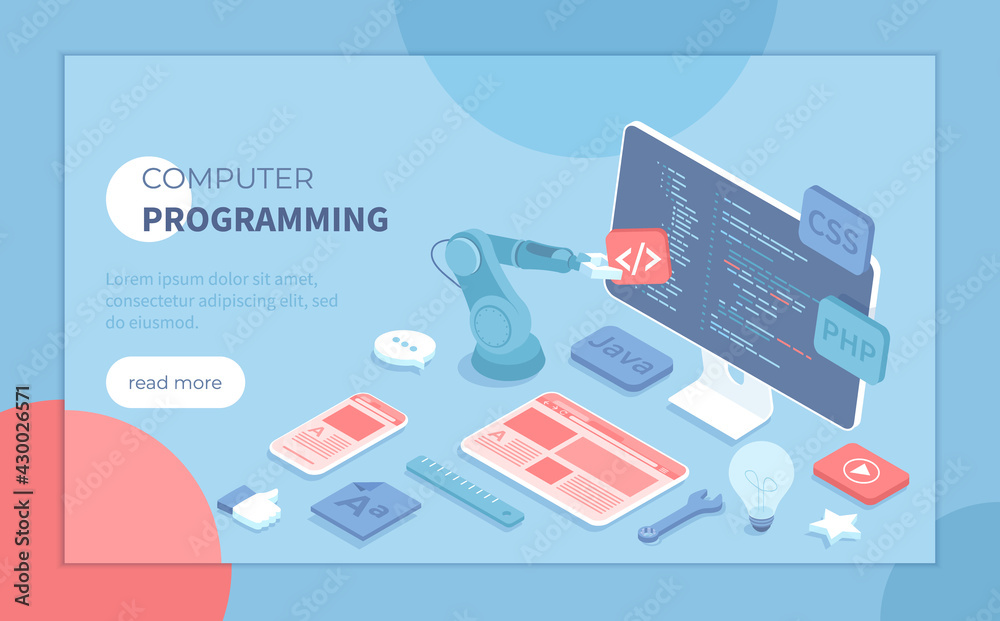 Wall mural computer programming, software, web, app development. program code on monitor screen, website templa