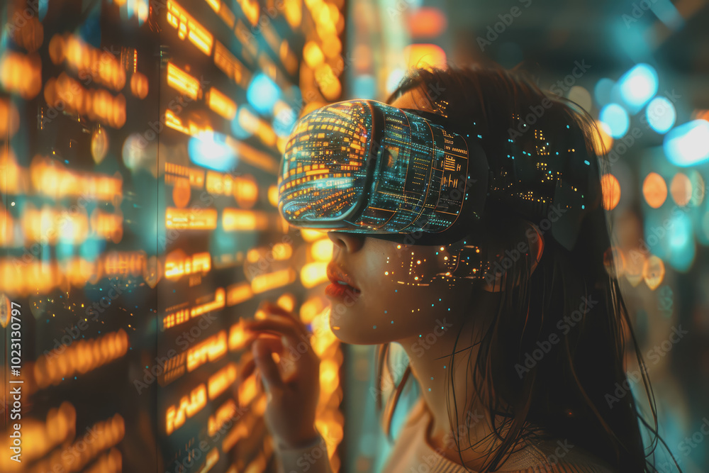 Wall mural computer programming code scripts augmented reality hologram.