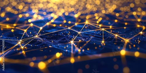 The watermark will not be included on Wall mural.: Computer screen with a network of lines and dots
