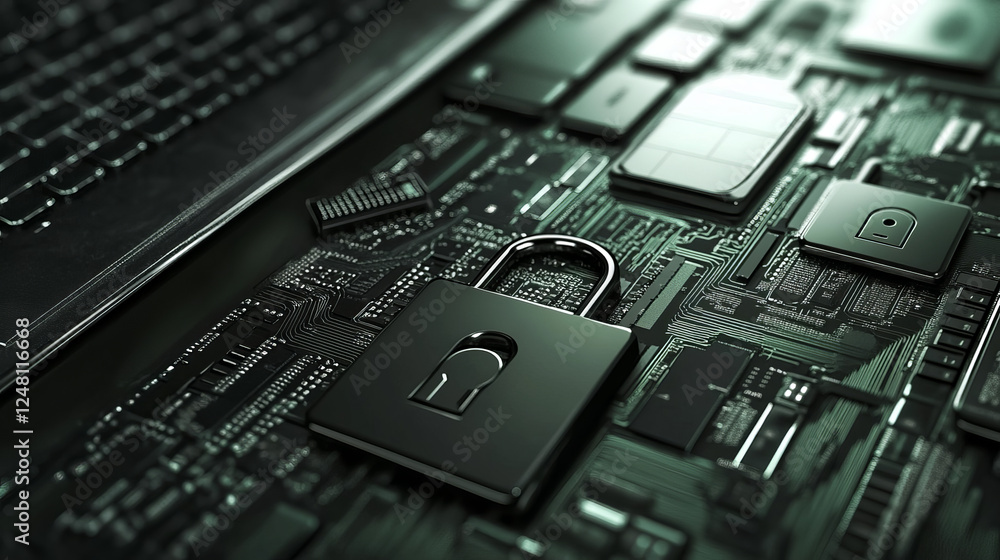 Wall mural computer security banner. concept of safety internet technology, data secure. vector landing page of