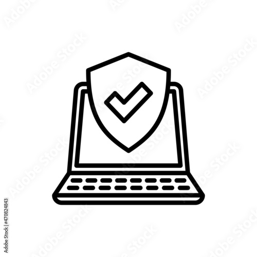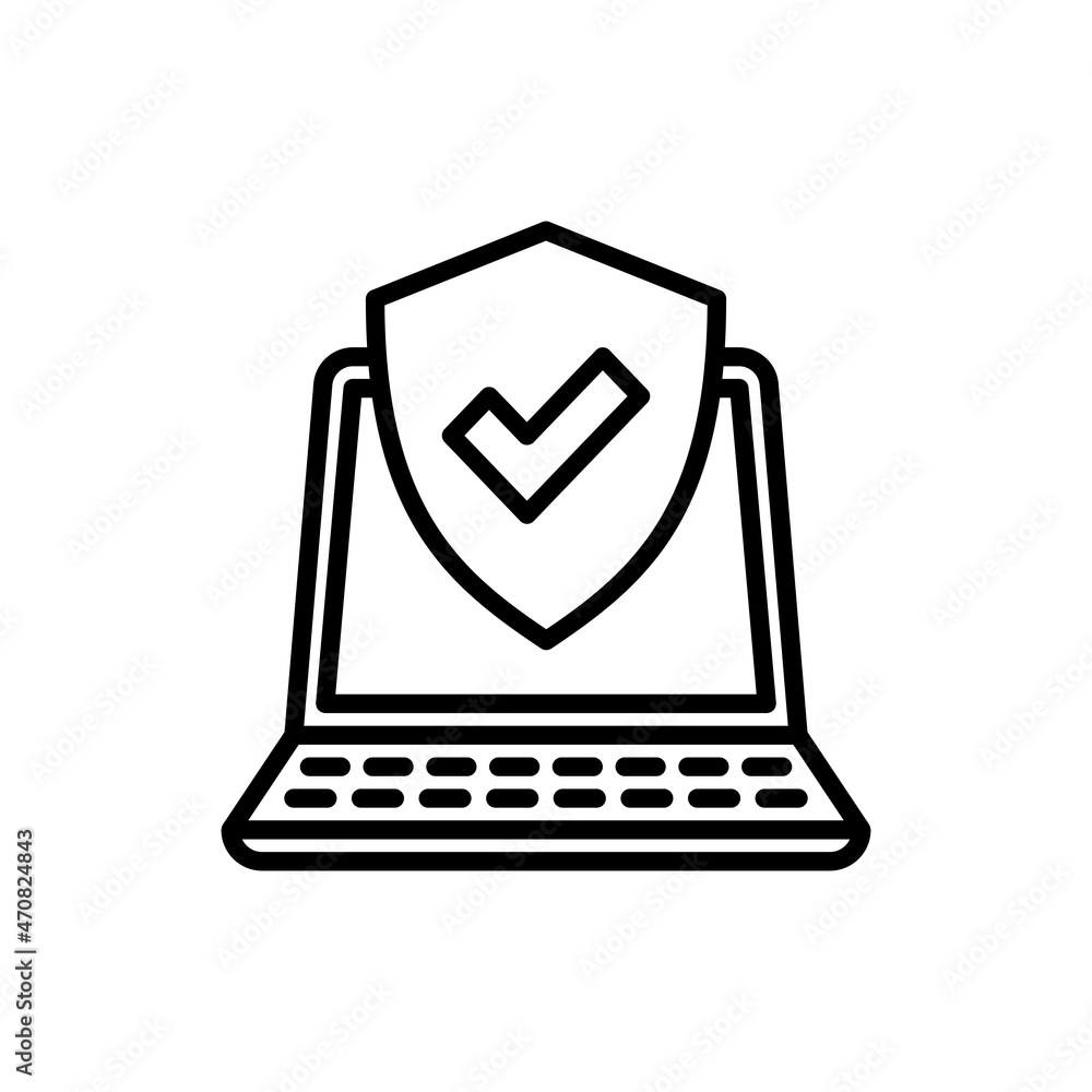 Wall mural computer security thin line icon: shield with tick on laptop screen. modern vector illustration. - Wall murals Wall mural computer security thin line icon: shield with tick on laptop screen. modern vector illustration. - Wall murals