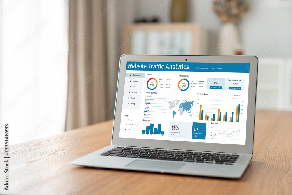 The watermark will not be included on Wall mural.: Computer software for website traffic analytics data on computer screen - concept of seo search engin