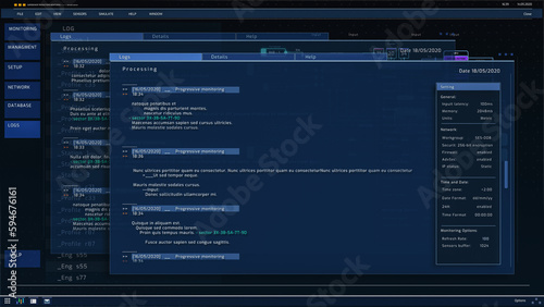 The watermark will not be included on Wall mural.: Computer user interface showing infographics, working coding terminal, cyber security checkup, monit