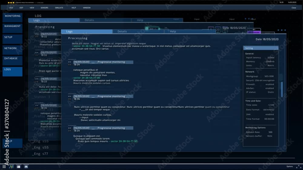 The watermark will not be included on Wall mural.: Computer user interface showing infographics, working coding terminal, cyber security checkup, monit