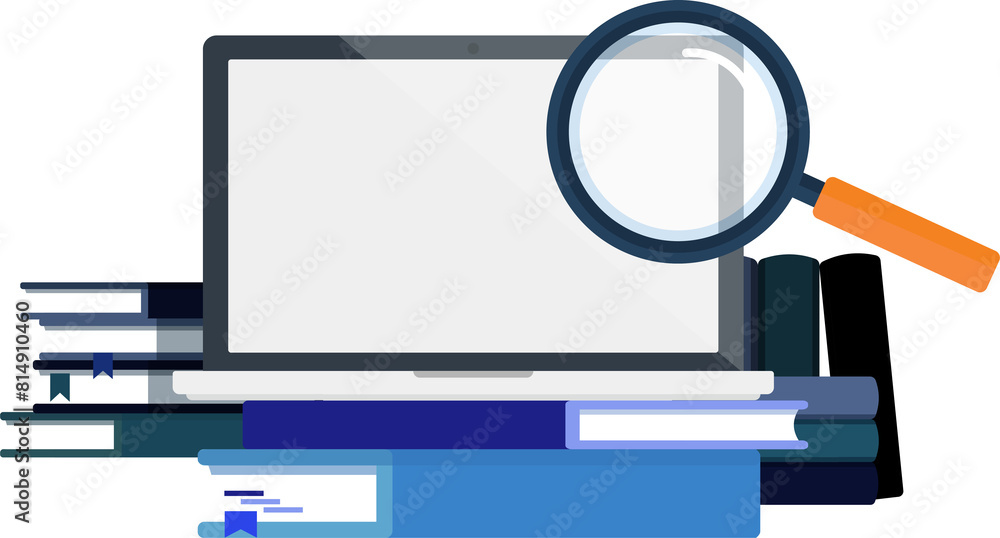 Wall mural computer with magnifying glass and books.internet web page search engine optimization research vecto - Wall murals Wall mural computer with magnifying glass and books.internet web page search engine optimization research vecto - Wall murals