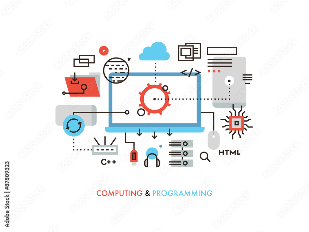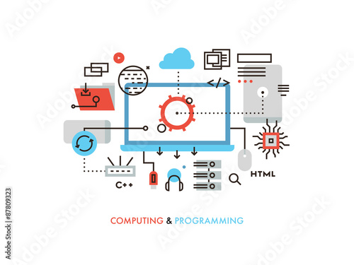 The watermark will not be included on Wall mural.: Computing and programming flat line illustration