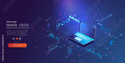 Wall mural concept business strategy. analysis data and investment. application of laptop with business graph a