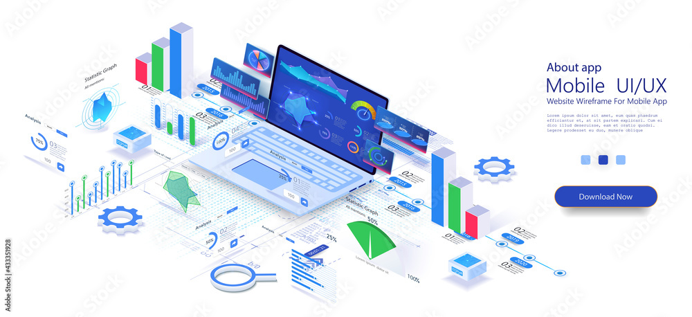 Wall mural concept business strategy. analysis data and investment. application of laptop with business graph a