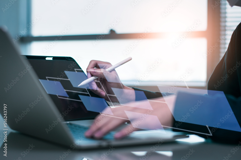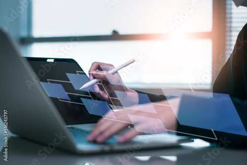 Wall mural : Concept business using tool process workflow and flowchart,database and digital file storage system