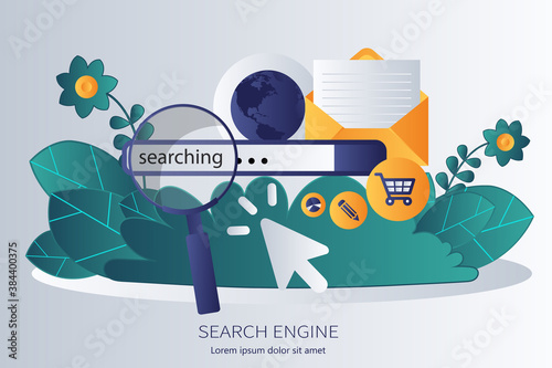 Wall mural concept for keyword research, on-page optimization and search engine optimization. flat vector illus - Wall murals Wall mural concept for keyword research, on-page optimization and search engine optimization. flat vector illus - Wall murals