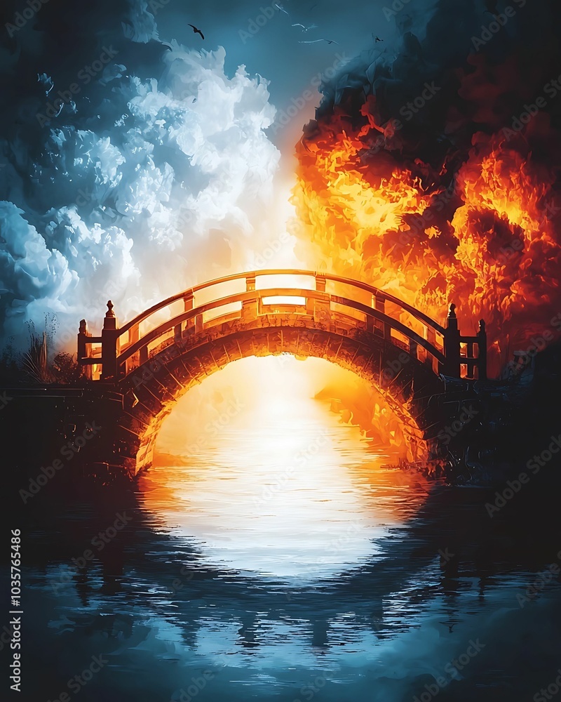 The watermark will not be included on Wall mural.: Concept good and bad determination a captivating scene of contrasting elements the fiery and serene