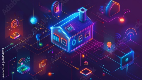 The watermark will not be included on Wall mural.: Concept of a smart home connected to the internet through a home network - background with internet o