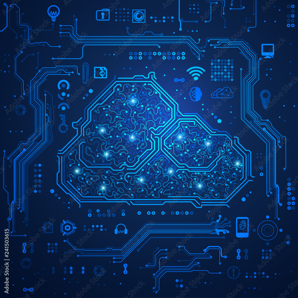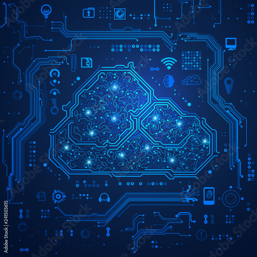 Wall mural concept of cloud computing technology, shape of cloud combined with electronic board pattern