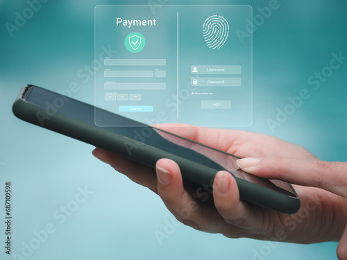 The watermark will not be included on Wall mural.: Concept of cyber secure payment technology, secure access to information through digital technology -