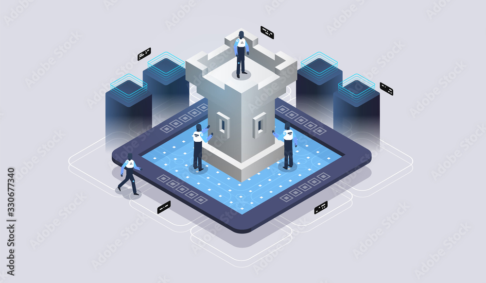Wall mural concept of data network management .vector isometric map with business networking servers. data prot - Wall murals Wall mural concept of data network management .vector isometric map with business networking servers. data prot - Wall murals