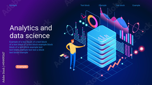 Wall mural concept of data research, technology, data analysis and science. modern flat design isometric concep