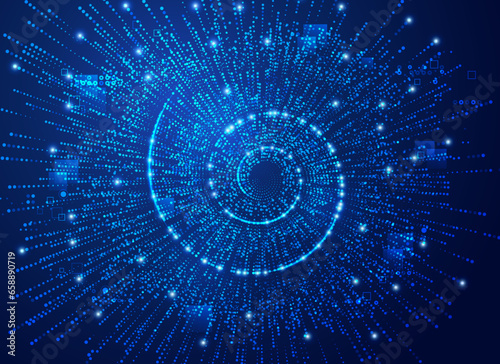 Wall mural concept of digital transformation or big data, graphic of dotted helix shape with technology element - Wall murals Wall mural concept of digital transformation or big data, graphic of dotted helix shape with technology element - Wall murals
