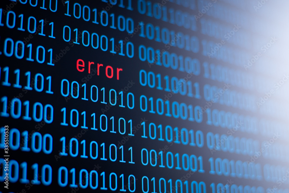 Wall mural concept of error in program code. detection of dangerous worms, bugs and viruses in computer program
