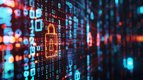 Wall mural : Concept of financial data encryption with a visual of encrypted transaction codes, digital locks, an