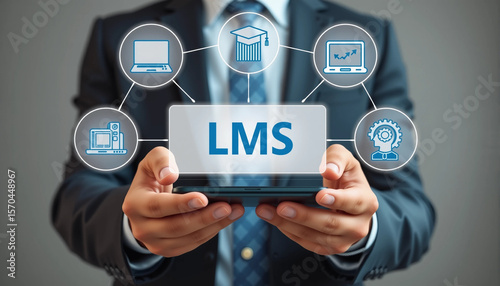 The watermark will not be included on Wall mural.: Concept of lms learning management system - e-learning software application for administration, docum