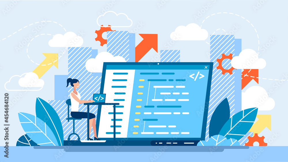 The watermark will not be included on Wall mural.: Concept of script coding, programming - a programming language - programmer working on web development