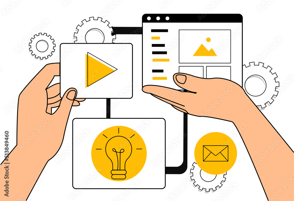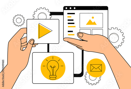 Wall mural concept of website design. team of graphic designers develop page design elements, interface. creati - Wall murals Wall mural concept of website design. team of graphic designers develop page design elements, interface. creati - Wall murals