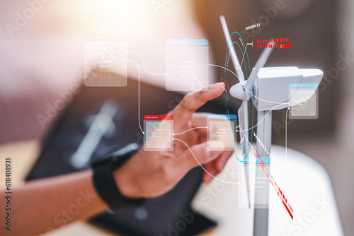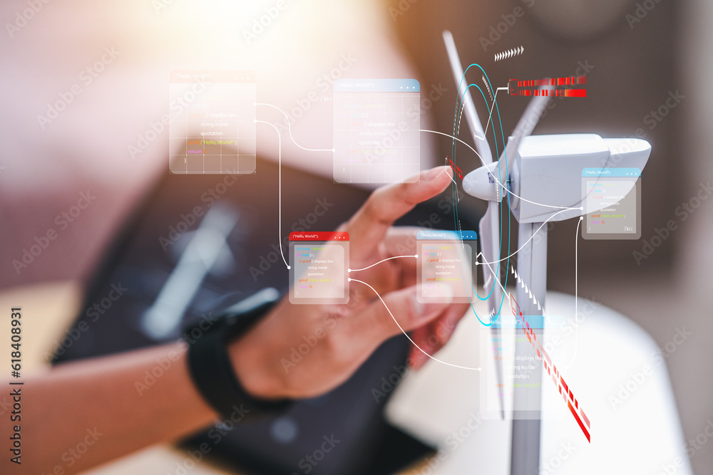 Wall mural concept programmer, developer programming and coding technology, hand close up asianwoman using lapt