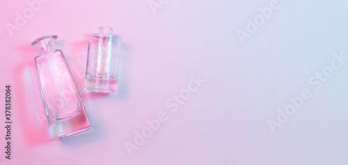 Wall mural concept with one cylindrical round-bottom and one shaped square-bottom crystal clear clean empty gla