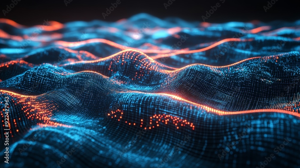 The watermark will not be included on Wall mural.: Conceptual abstract background with blue digital particles, lines and dots connecting wave flow, dig
