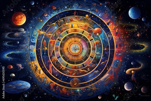 Wall mural conceptual abstraction of time and space depicted through an intricate tapestry of celestial motifs  - Wall murals Wall mural conceptual abstraction of time and space depicted through an intricate tapestry of celestial motifs - Wall murals