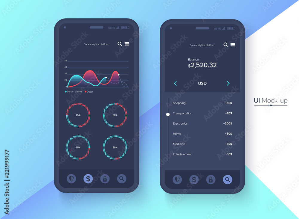 Wall mural conceptual black mobile phone mock-up for app interface presentation. user interface design concept. - Wall murals Wall mural conceptual black mobile phone mock-up for app interface presentation. user interface design concept. - Wall murals
