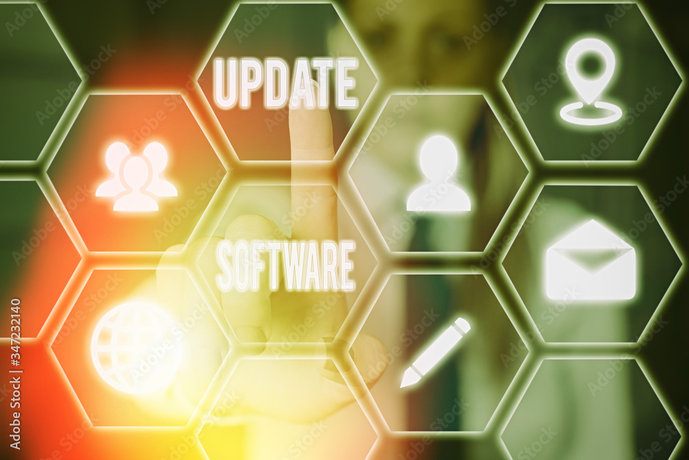 The watermark will not be included on Wall mural.: Conceptual hand writing showing update software - concept meaning replacing program with a newer vers
