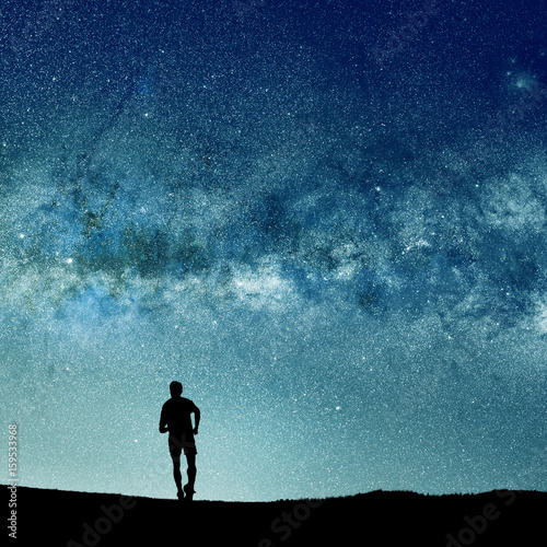Wall mural : Conceptual image of silhouetted man and abstract universe lights - nasa galaxy images manipulated and