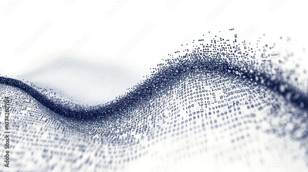 Wall mural conceptual image of source code symbols and numbers arranged in a wave-like pattern with a clean min - Wall murals Wall mural conceptual image of source code symbols and numbers arranged in a wave-like pattern with a clean min - Wall murals