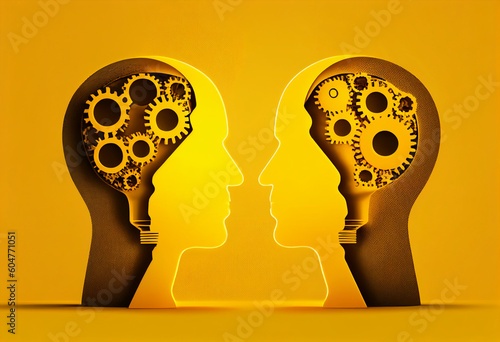 The watermark will not be included on Wall mural.: Conceptual image of two human heads with gears and cogwheels generative ai