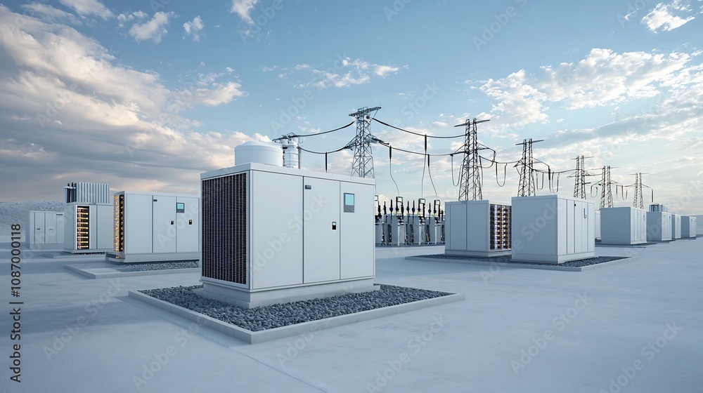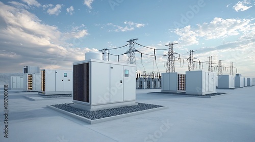 The watermark will not be included on Wall mural.: Conceptual visualization of a modern smart grid system featuring centralized energy of renewable pow