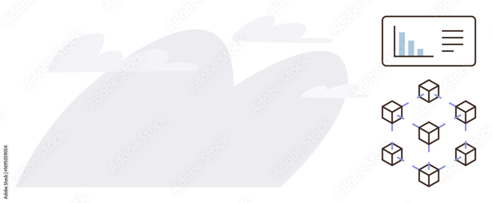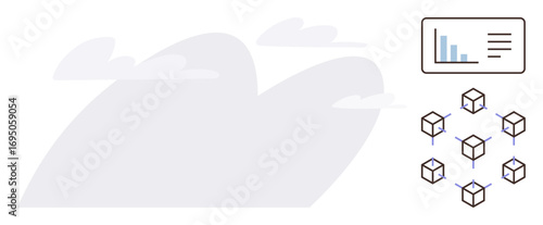 Wall mural : Connected cubes symbolizing network or blockchain with a data chart for analysis and optimization - i