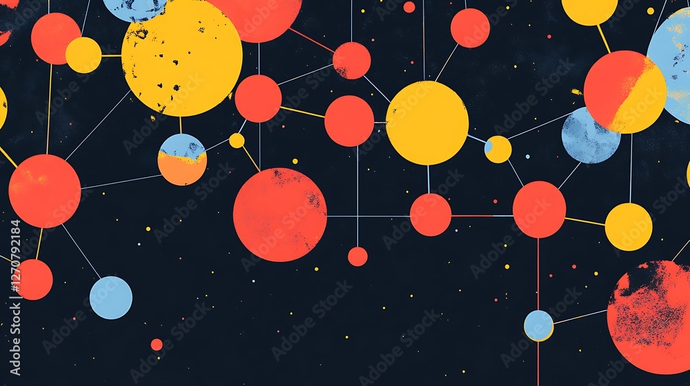 The watermark will not be included on Wall mural.: Connected network of colorful nodes with textured surfaces, for presentation or abstract backgrounds