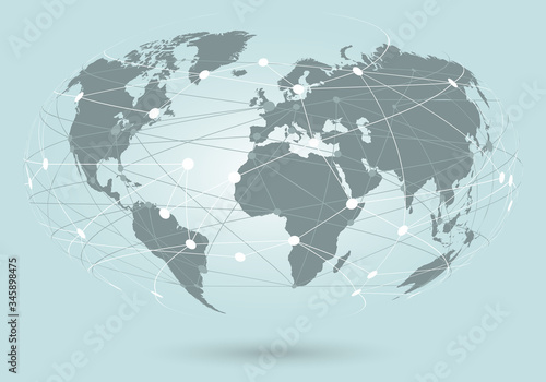 The watermark will not be included on Wall mural.: Connecting points and lines on the world map
