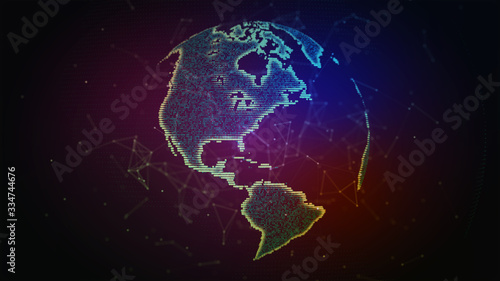 The watermark will not be included on Wall mural.: Connection lines around earth globe - background with light effect - global international connectivity