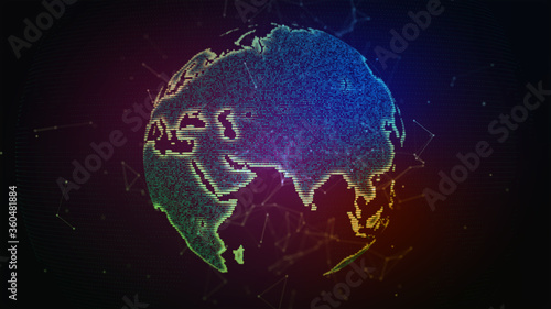 The watermark will not be included on Wall mural.: Connection lines around earth globe - background with light effect - global international connectivity