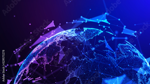 The watermark will not be included on Wall mural.: Connection lines around earth globe - background with light effect - global international connectivity