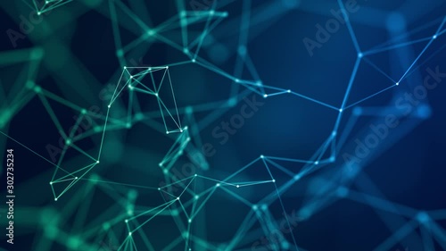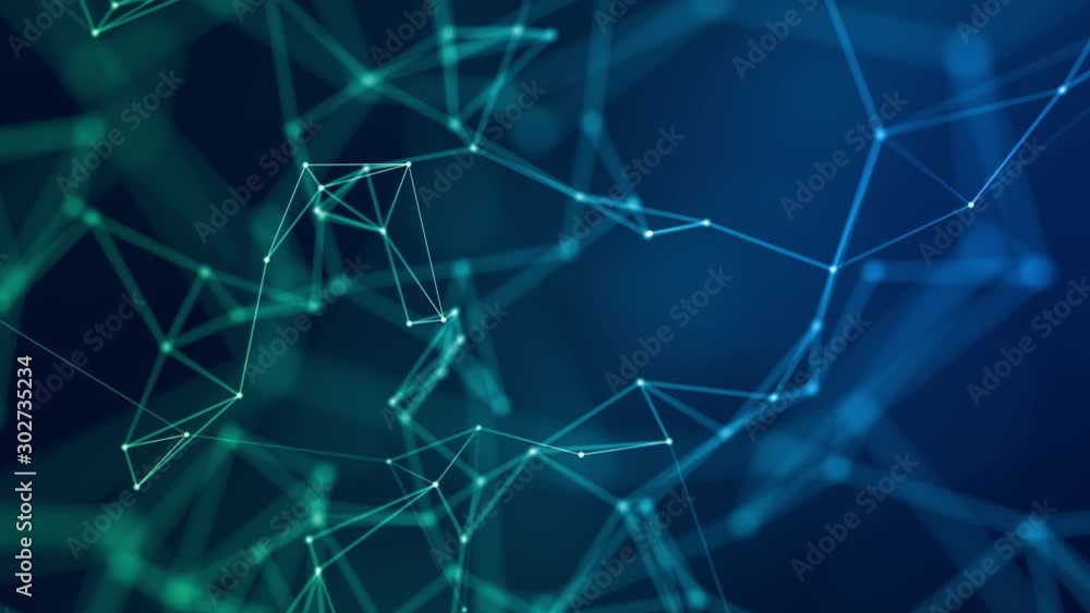 Connections dots with data geometric plexus background the wave blue and green - 4k video animation - Wall mural