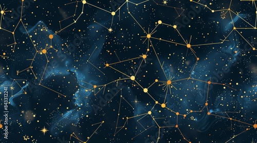 Wall mural constellations and stars forming a celestial pattern. seamless illustration pattern.