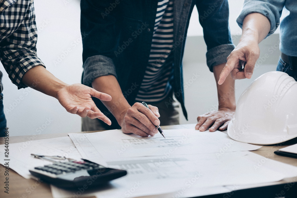 The watermark will not be included on Wall mural.: Construction and structure concept of engineer or architect meeting for project working with partner
