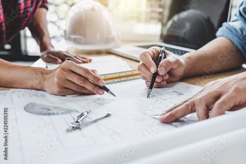 Wall mural : Construction and structure concept of engineer or architect meeting for project working with partner