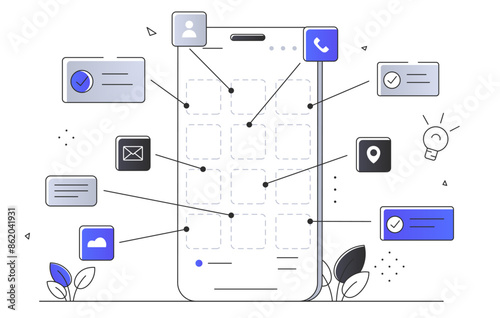 Wall mural : Construction phone menu - development of programs and software for gadget - mobile smartphone settings