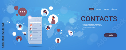 Wall mural contact list of mix race people social network communication concept smartphone select contacts scre
